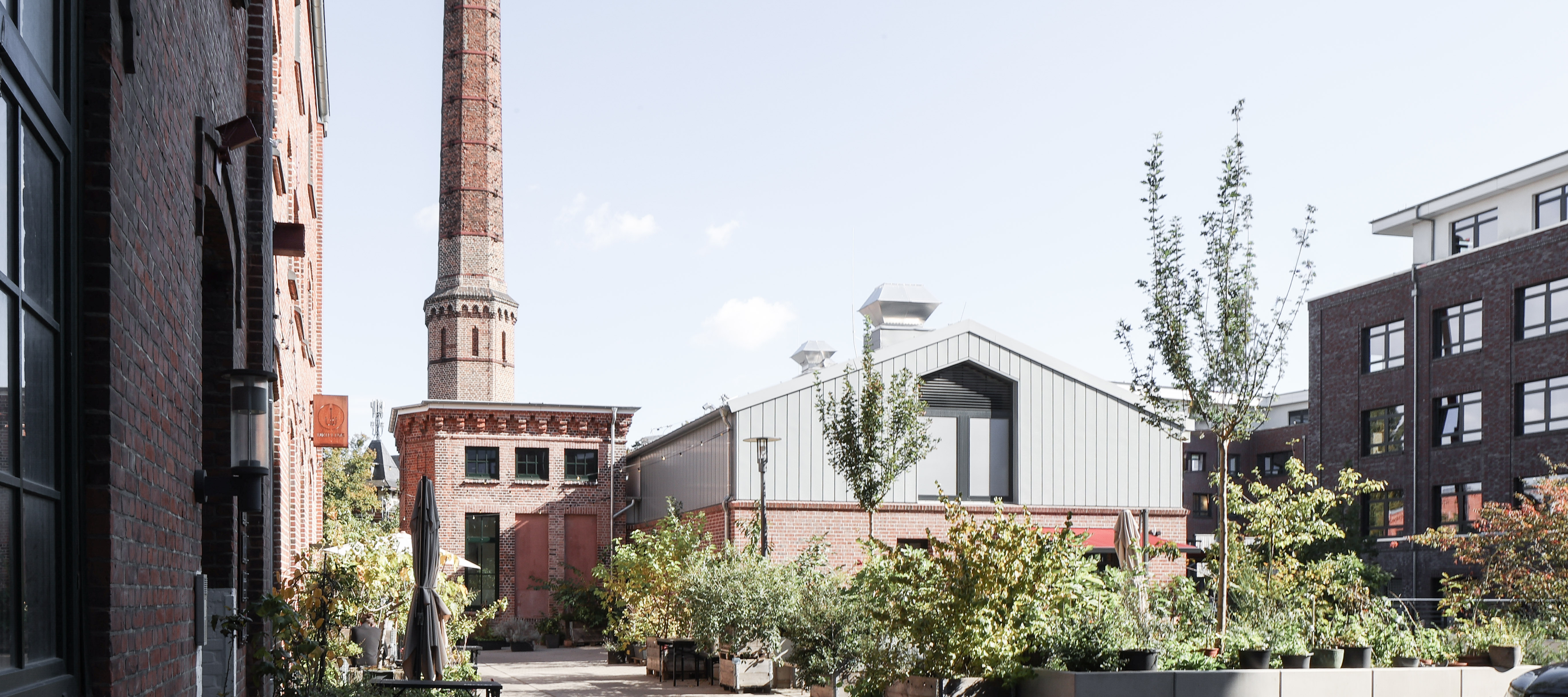 Ebenfalls auf dem Gelände der Marzipanfabrik wird Haus 8 errichtet, in dem ein weiterer gastronomischer Betrieb eingerichtet werden soll. Der geplante Neubau stellt sich als gestalterisch anspruchsvolle Aufgabe dar. Haus 8 wird an ein vorhandenes, altes Schornsteingebäude angebunden, welches unter Denkmalschutz steht. Der geplante Neubau wird sich harmonisch in das bestehende Umfeld einfügen. Attraktive Außenflächen werden für die Gastronomie gestaltet. Ein neuer Mittelpunkt der Marzipanfabrik wird hier entstehen.
